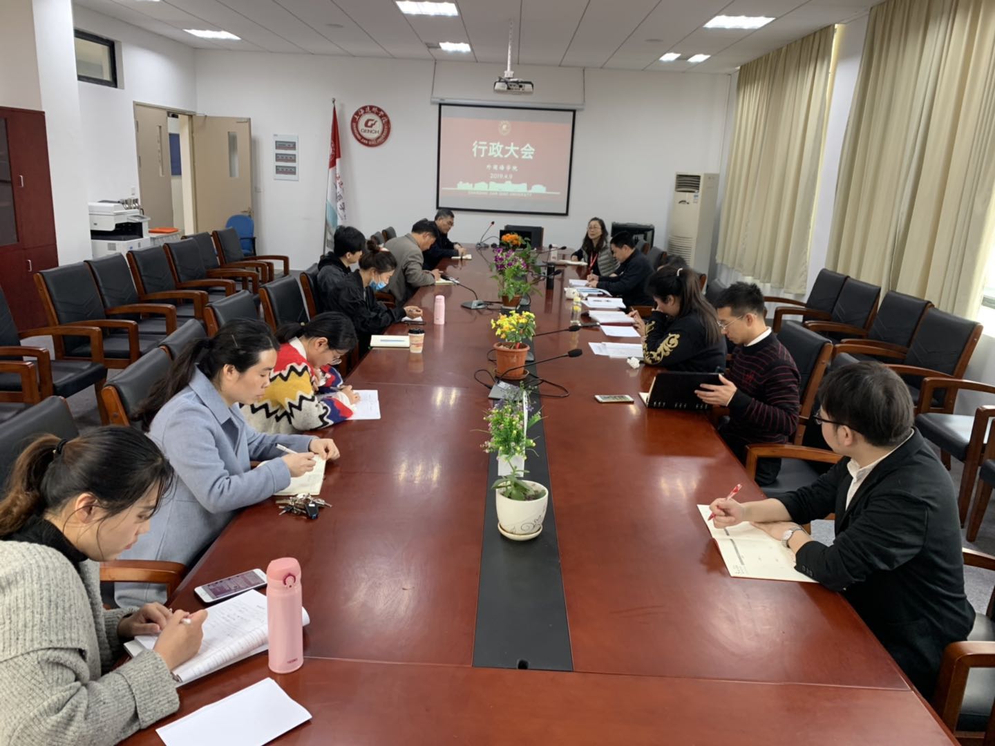 4月9日上午,外国语学院在9229会议室召开行政大会,参会的有外国语学院党总支书记江萍副教授、党总支副书记李雷、院办公室主任董显洋、全体辅导员、教务秘书和实验室老师,会议由江萍书记主持。